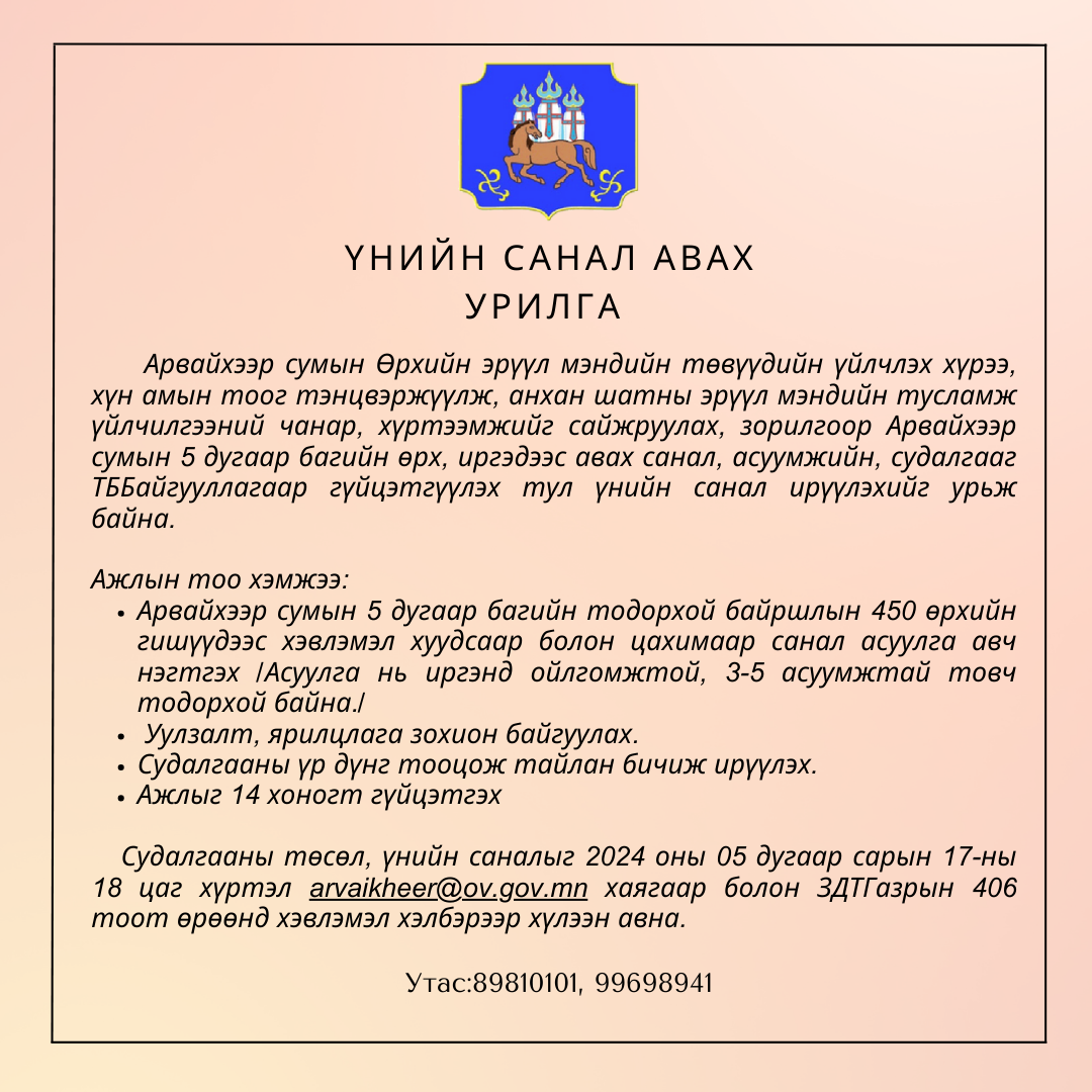 ҮНИЙН САНАЛ АВАХ УРИЛГА